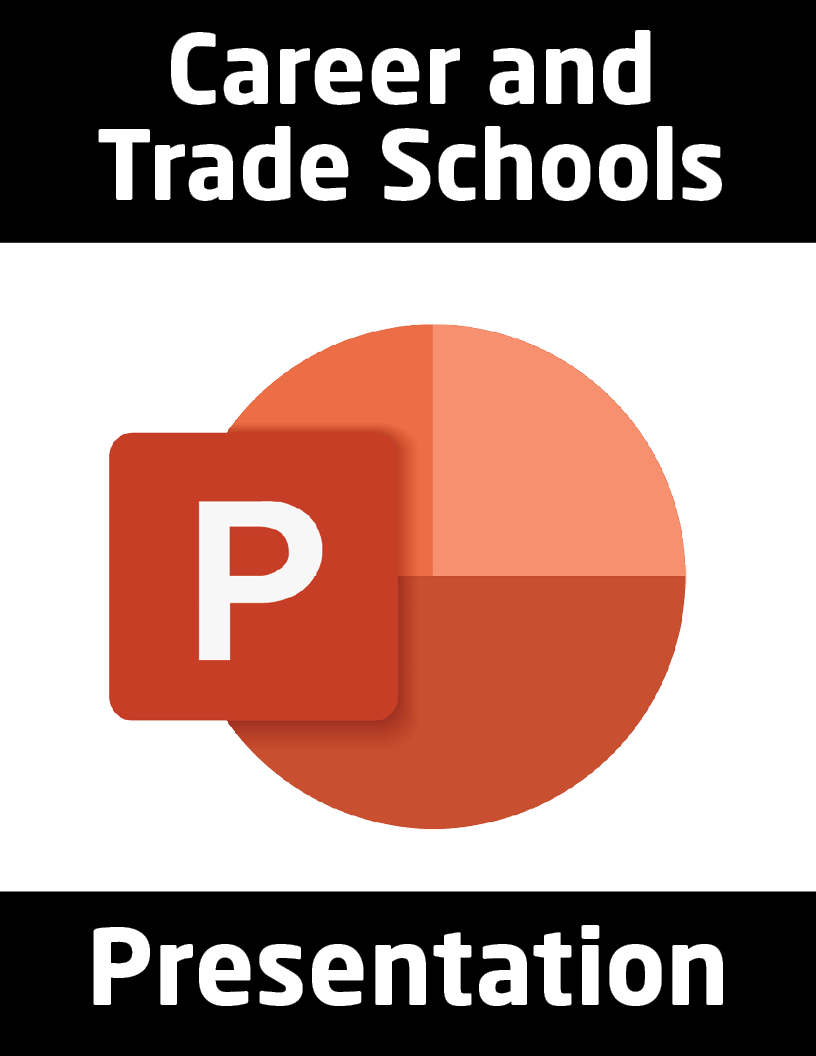 Show students how attending a career or trade school can prepare them for a specific career. This presentation provides valuable information on career and trade schools, what it’s like to attend one, and what to consider when choosing a school (such as cost, accreditation, and quality of instruction).