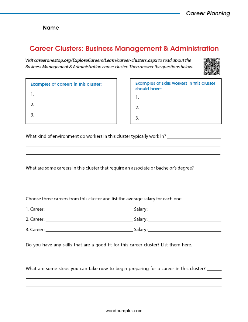 Students use this activity sheet to explore the Business Management and Administration career cluster on the CareerOneStop website.